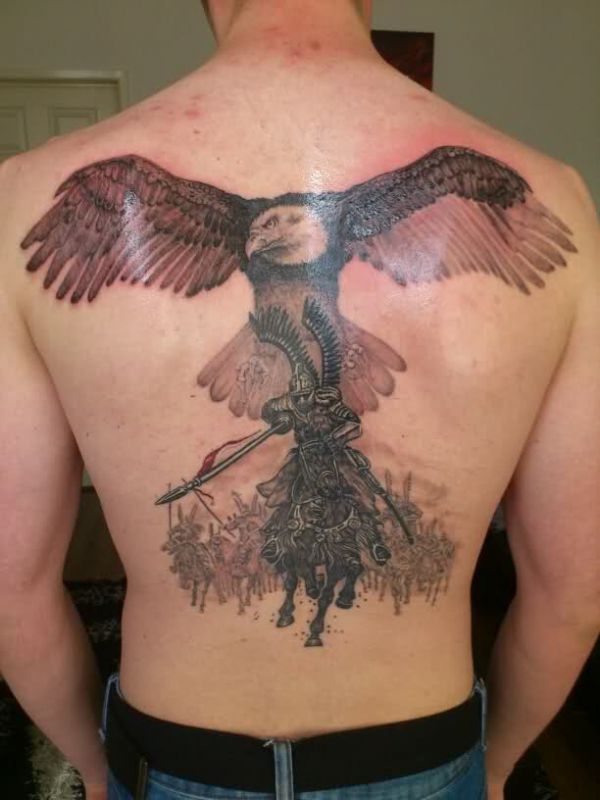 Eagle and knight on the horse tattoo