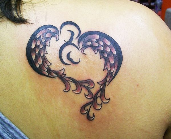 Nice tattoo with birds motive. Patterns is orignial, It's look like heart but there are two birds.