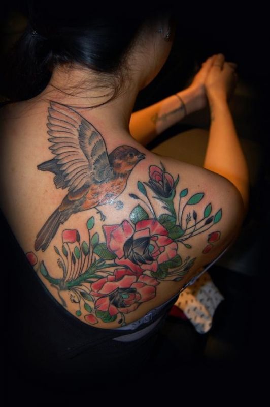 Sparrow and roses tattoo