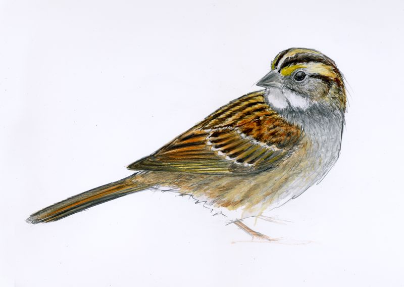 Colourful drawing project with sparrow. Bird look very sweet, his plumage is brown with a few shades. Nice tattoo design with popular bird.
